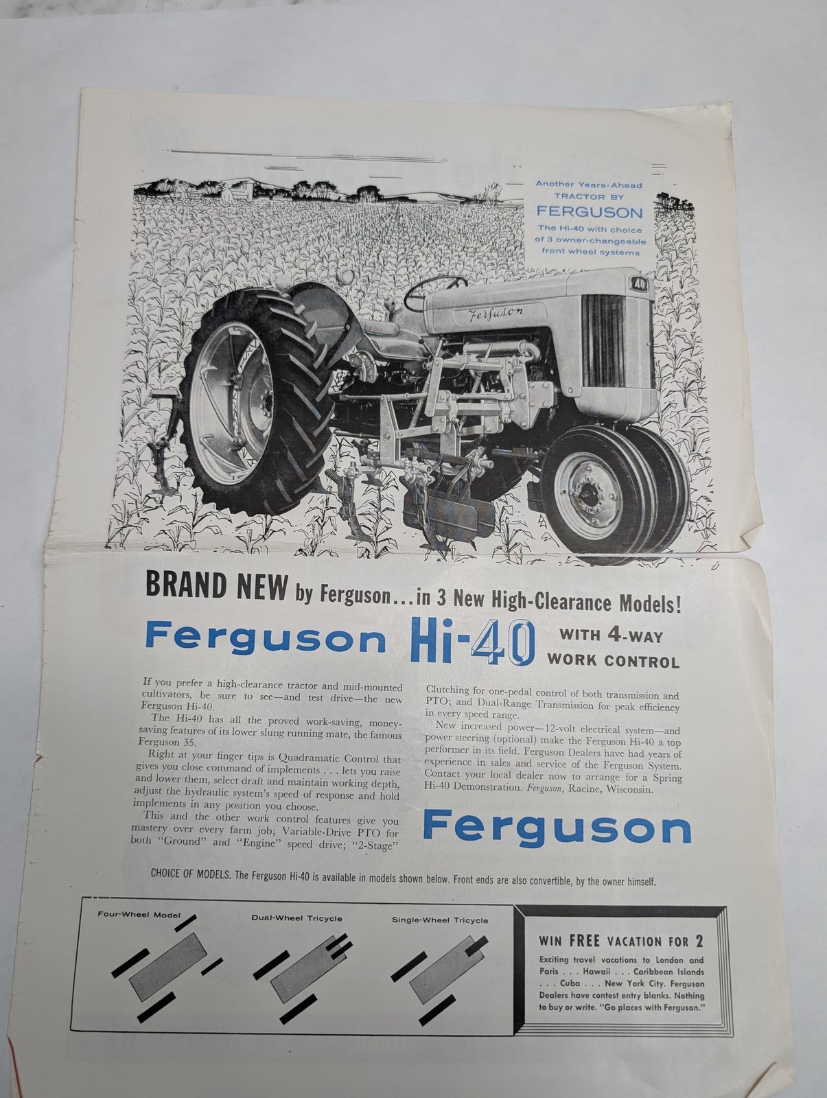 Original Ferguson Hi-40 Tractor Sales Sheet Foldout Brochure Advertisment