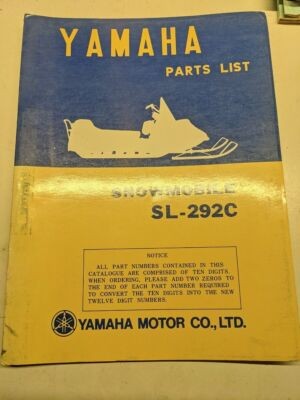 Original Yamaha Oem Parts List Book Model Sl-292C 1972 839-60 Snowmobile Manual