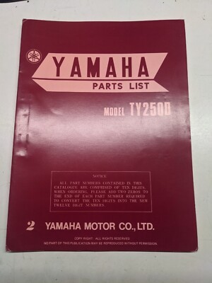Original Yamaha Oem Parts List Book Model Ty250D 1976 493-28198-61 Manual