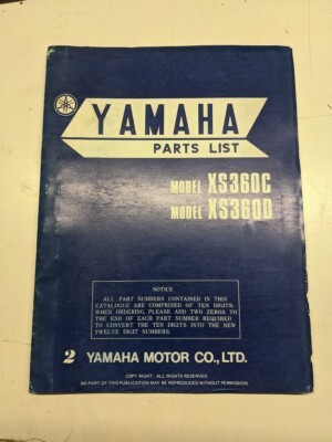 Original Yamaha Oem Parts List Book Model Xs360C Xs360D 1976 1L9-28198-61 Manual