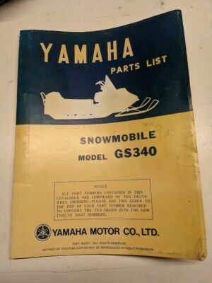 Original Yamaha Parts List Book Model Gs340 1975 A80-28198-60 Snowmobile Manual