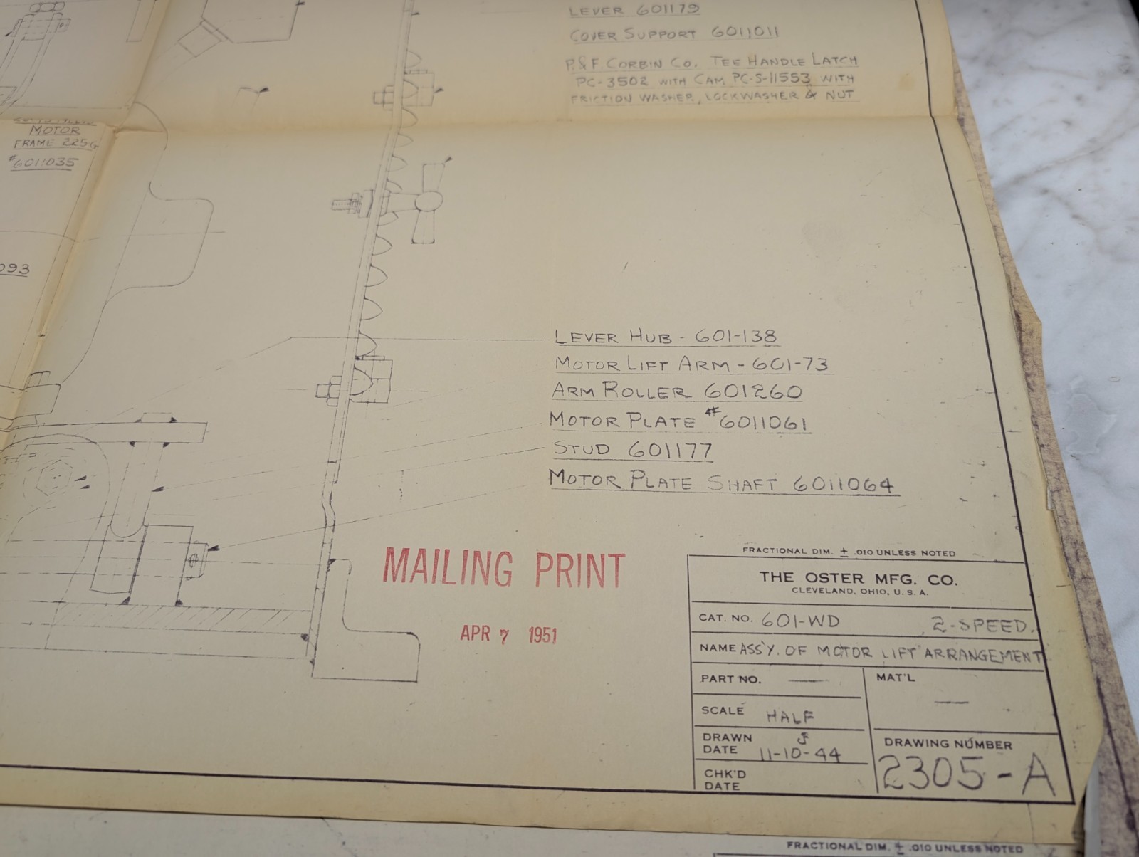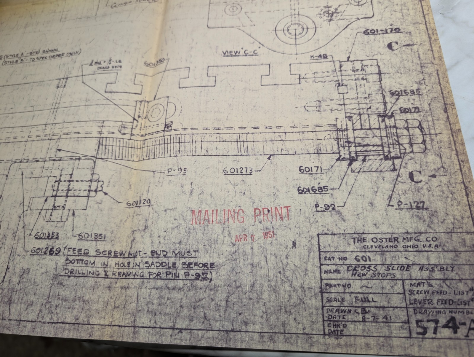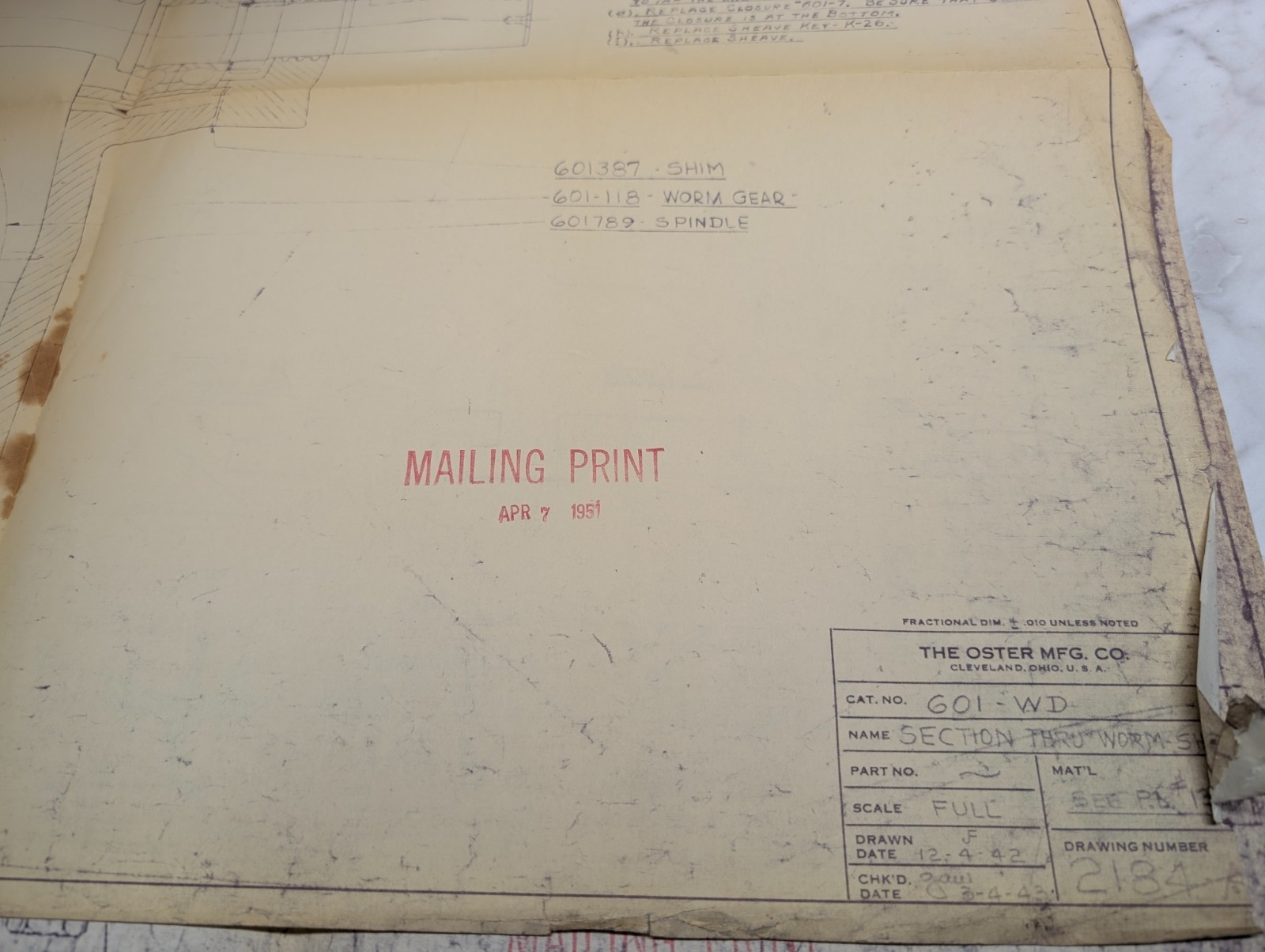Oster Mfg 601Wd Lathe Machine Tool Drawings Diagrams Blueprints Information