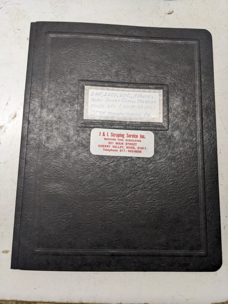 Oster Screw Machine 2Hp 220V 60C 3 Phase #601 Text Only Parts List Manual
