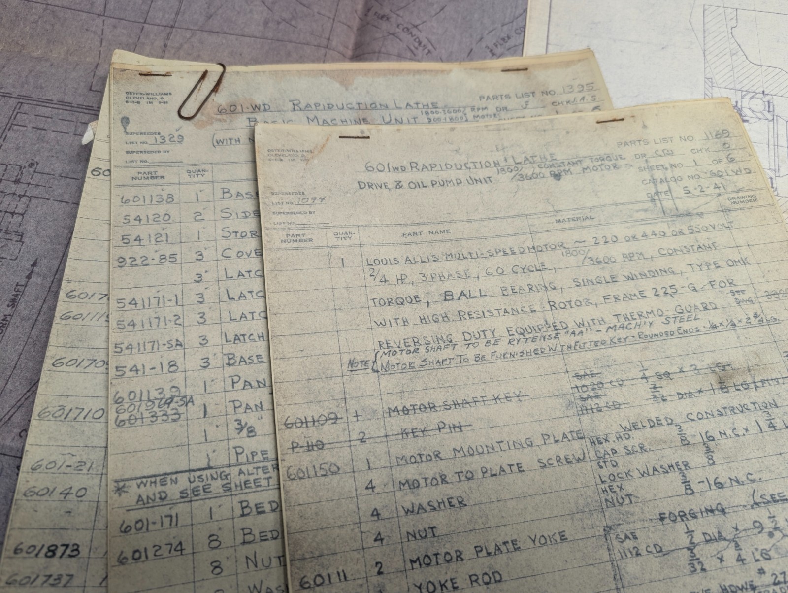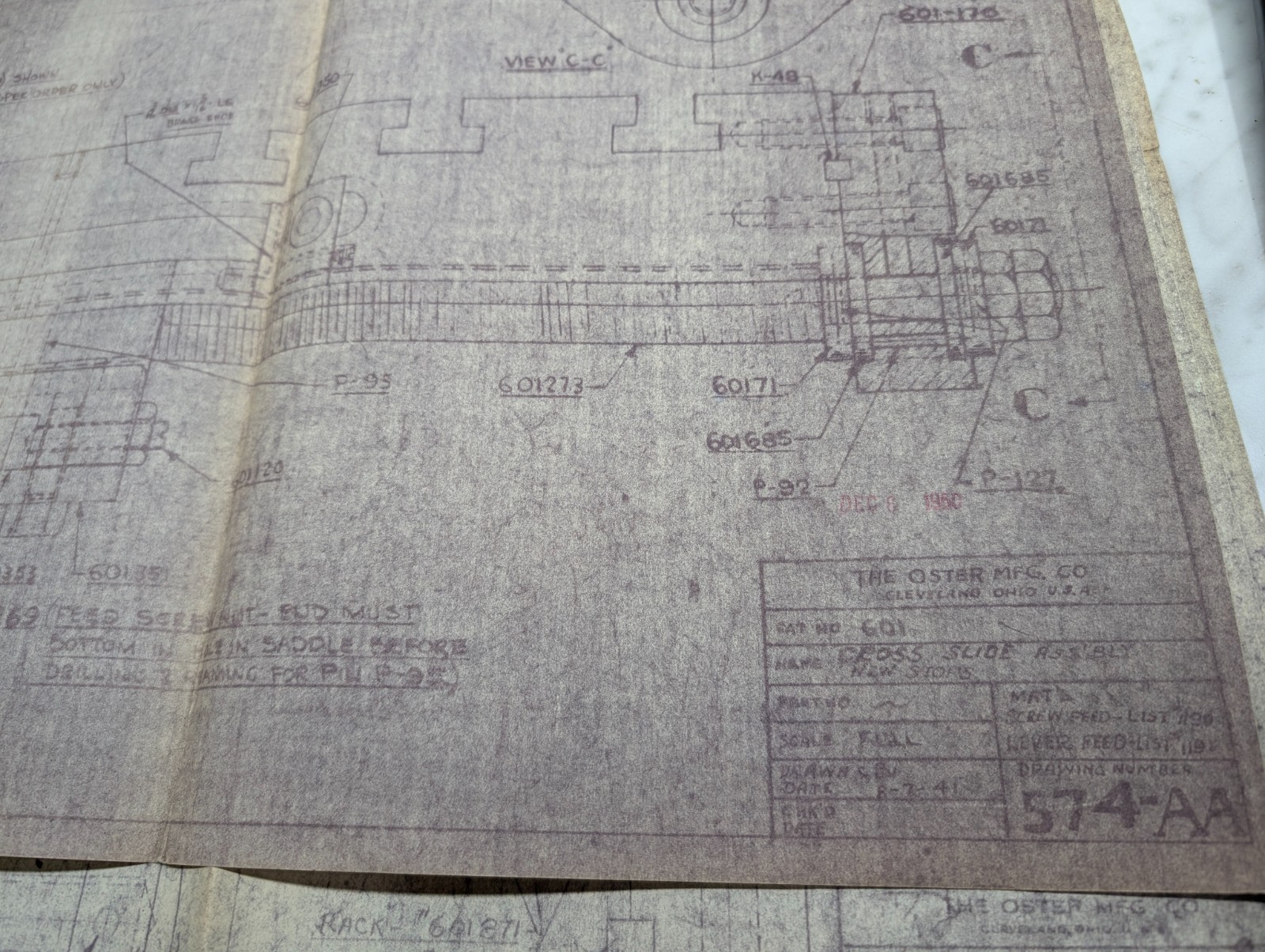 Oster Williams 601Wd Lathe Machine Tool Drawings Diagrams Blueprints Information