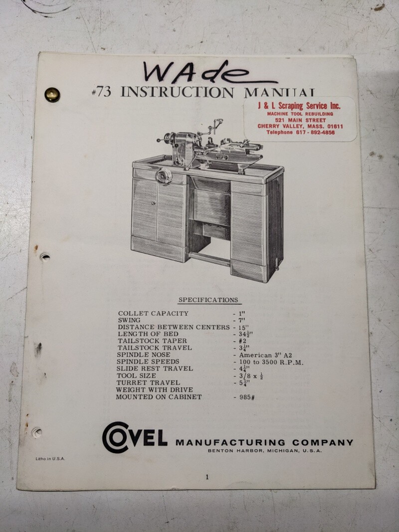 Ovel Mfg Umtc Wade #73 Instruction Manual Parts Diagram List Book Operation