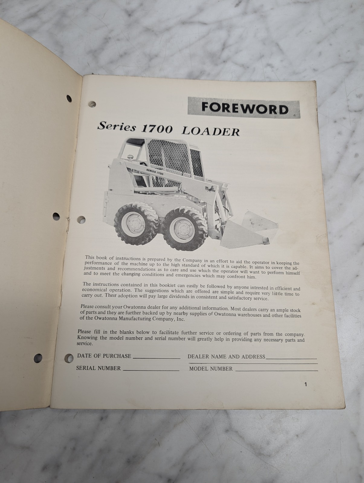 Owatonna 1700 Loader 002 37000 Operator’S Manual Owners Maintenance Guide Book
