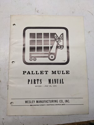 Pallet Mule Wesley Parts Manual List Book 1976 Fork Lift Hand Truck