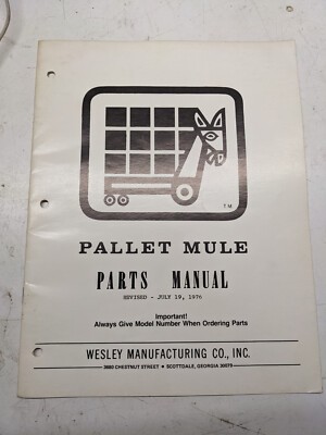 Pallet Mule Wesley Parts Manual List Book 1976 Lift Walkie Fork