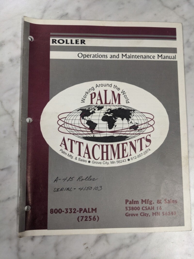 Palm Attachments Roller Owner Operator Service Maintenance Manual 1995