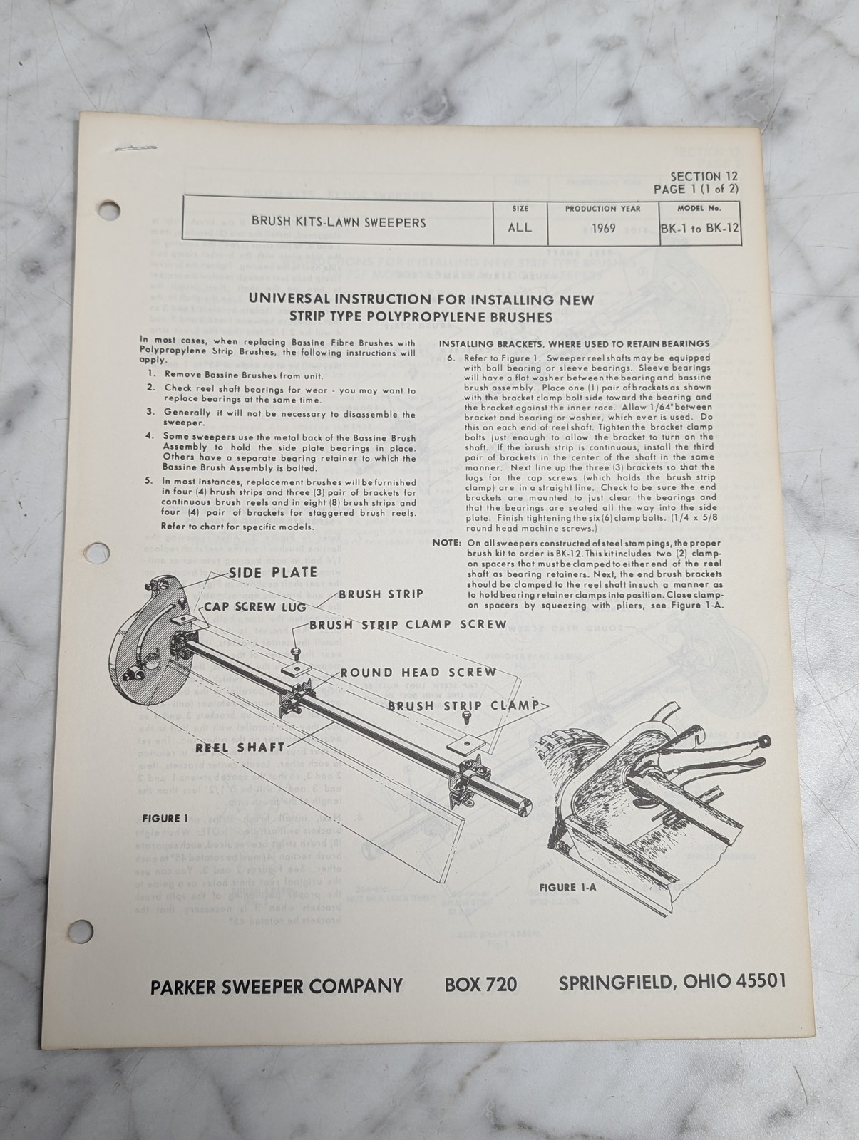 Parker Sweeper Bk 1 12 Brush Kits Lawn Sweepers Instruction 1969 Parts List