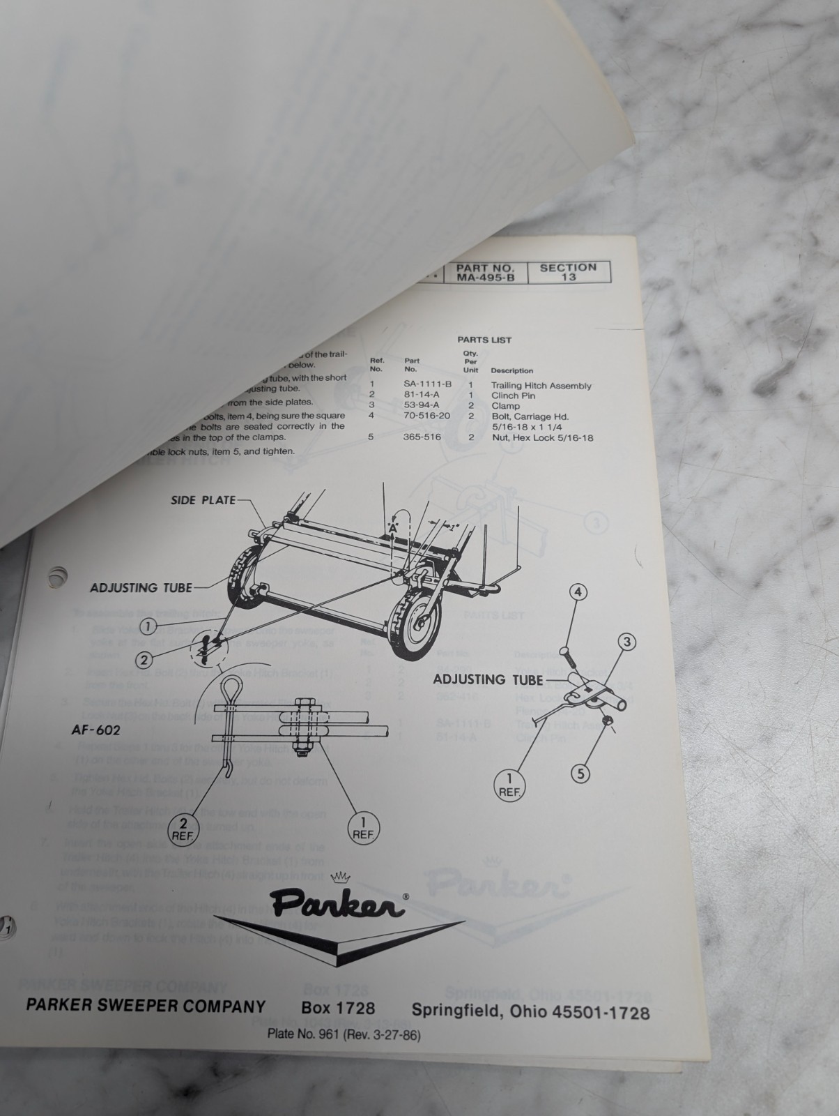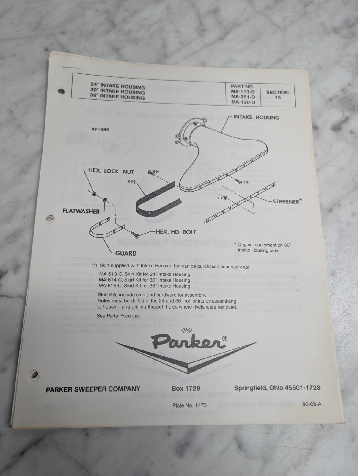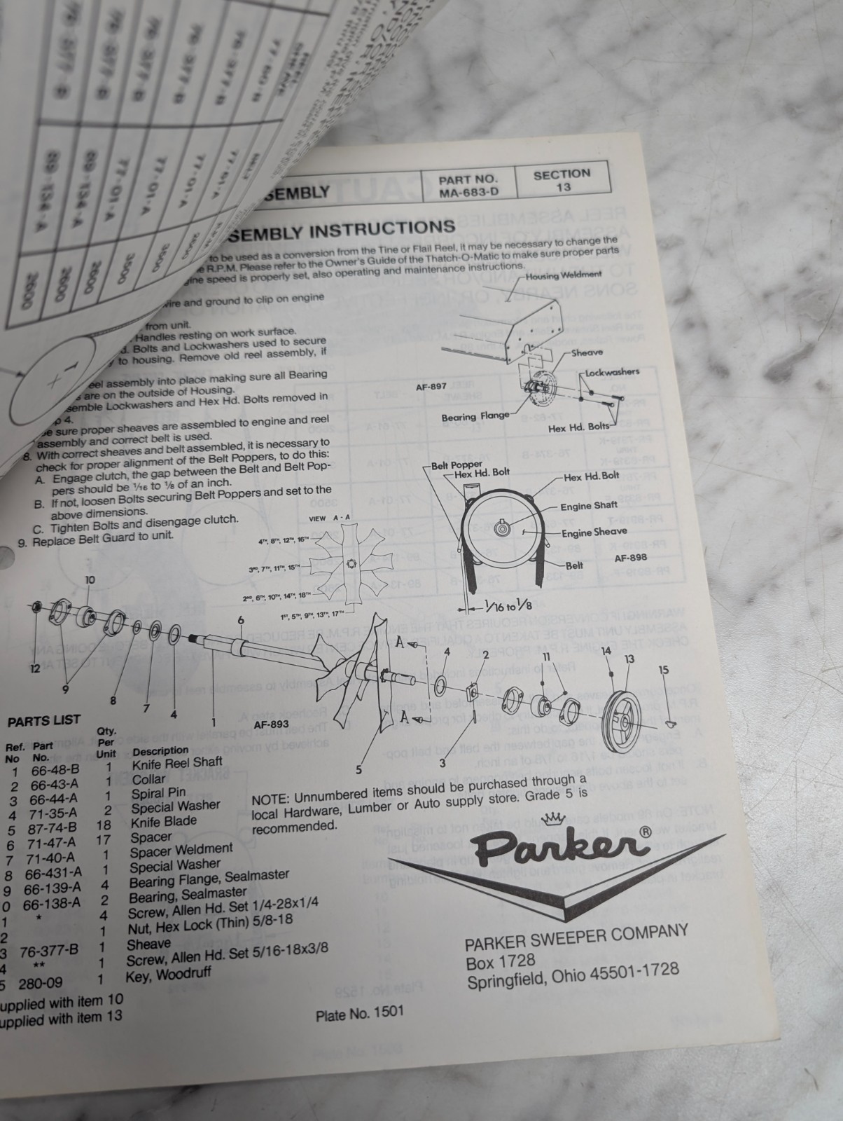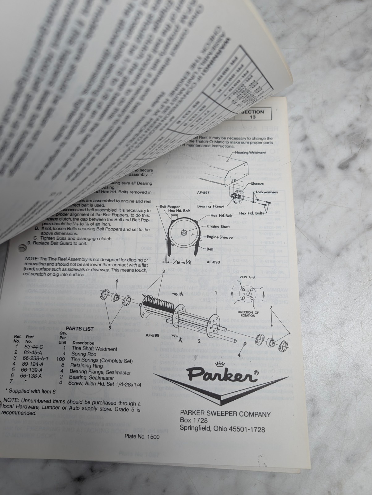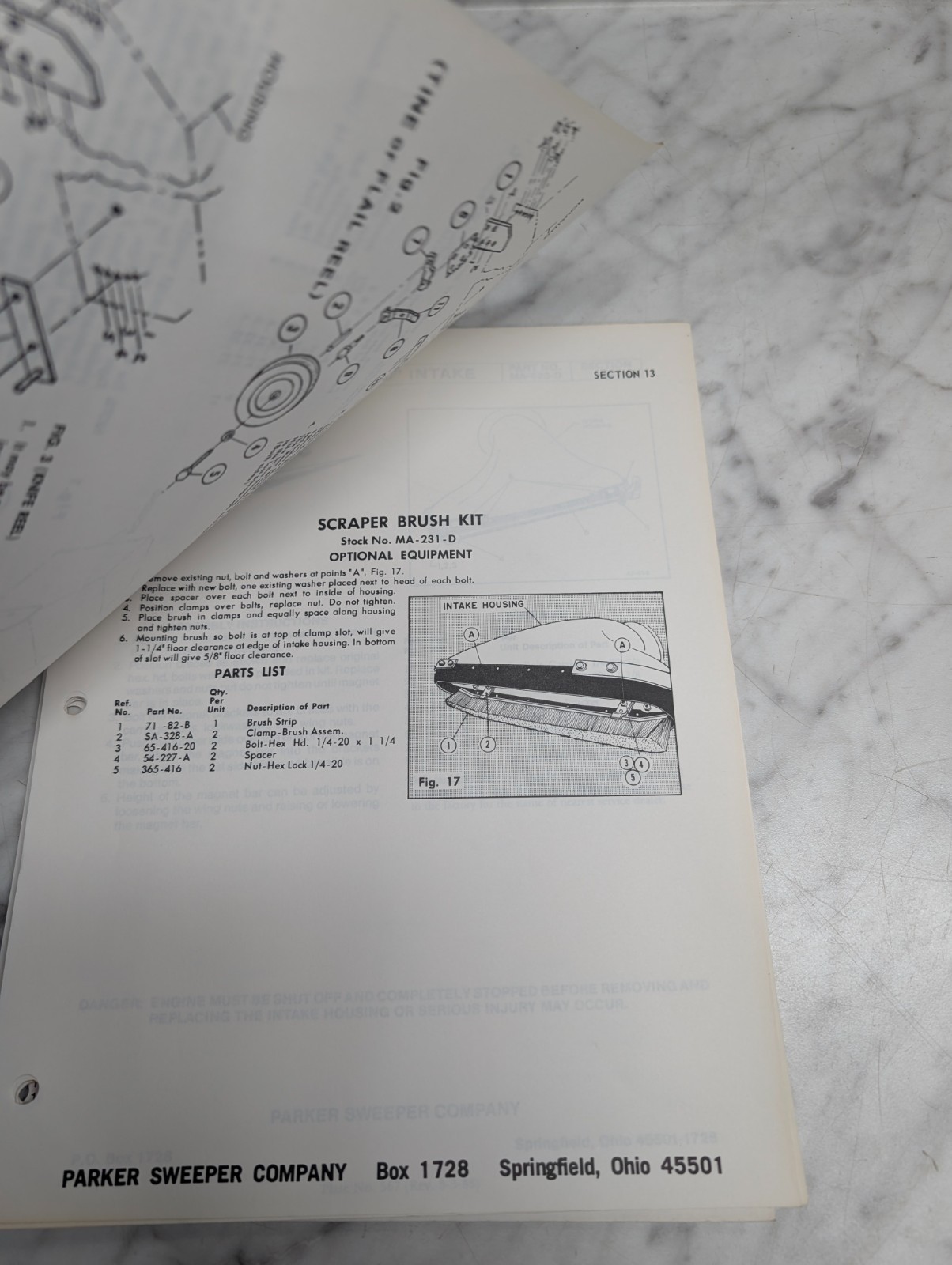 Parker Sweeper Company Section 13 Information Service Manual