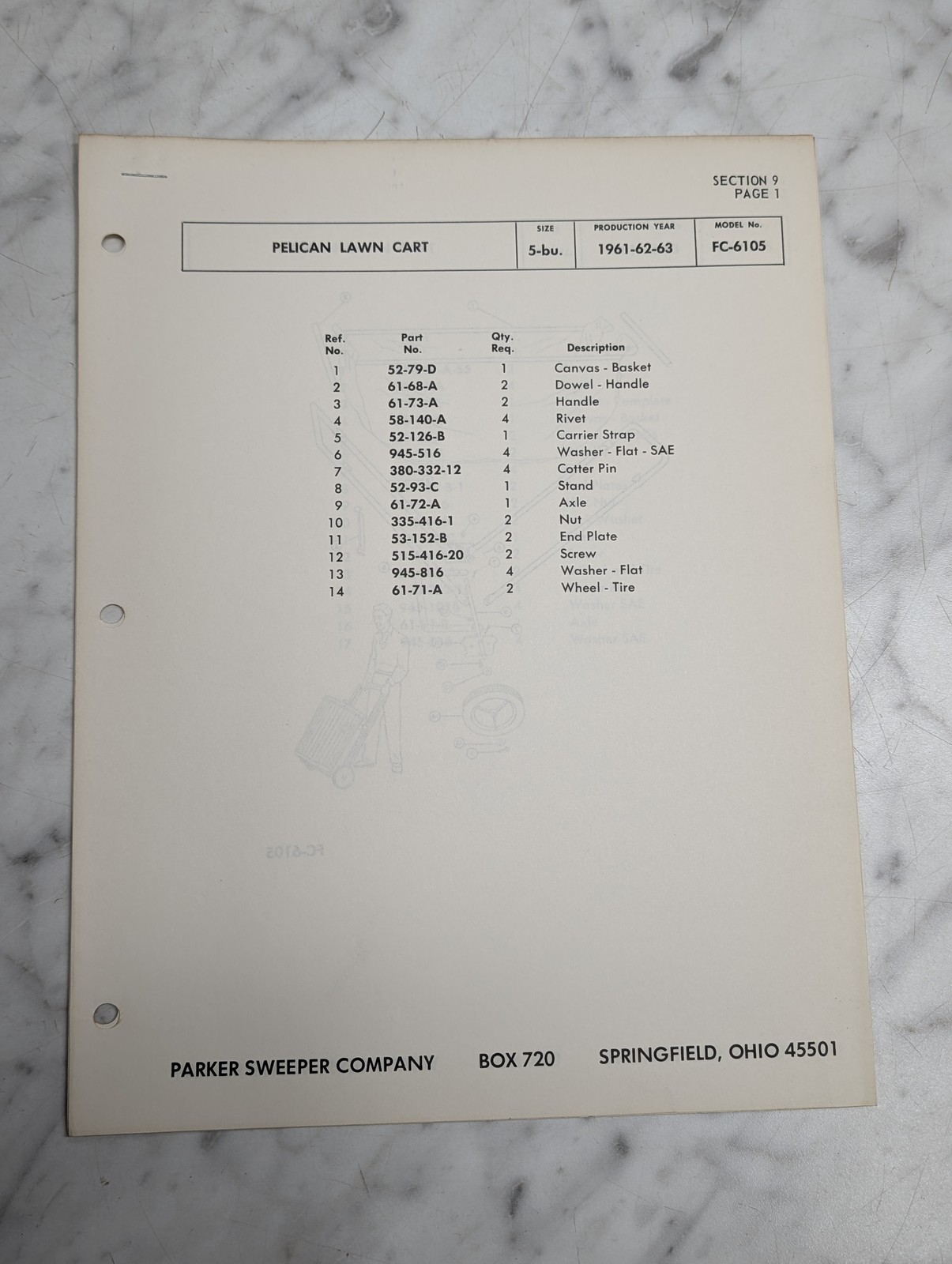Parker Sweeper Pelican Lawn Cart Fc 6105 5 Bu Production Year Parts List