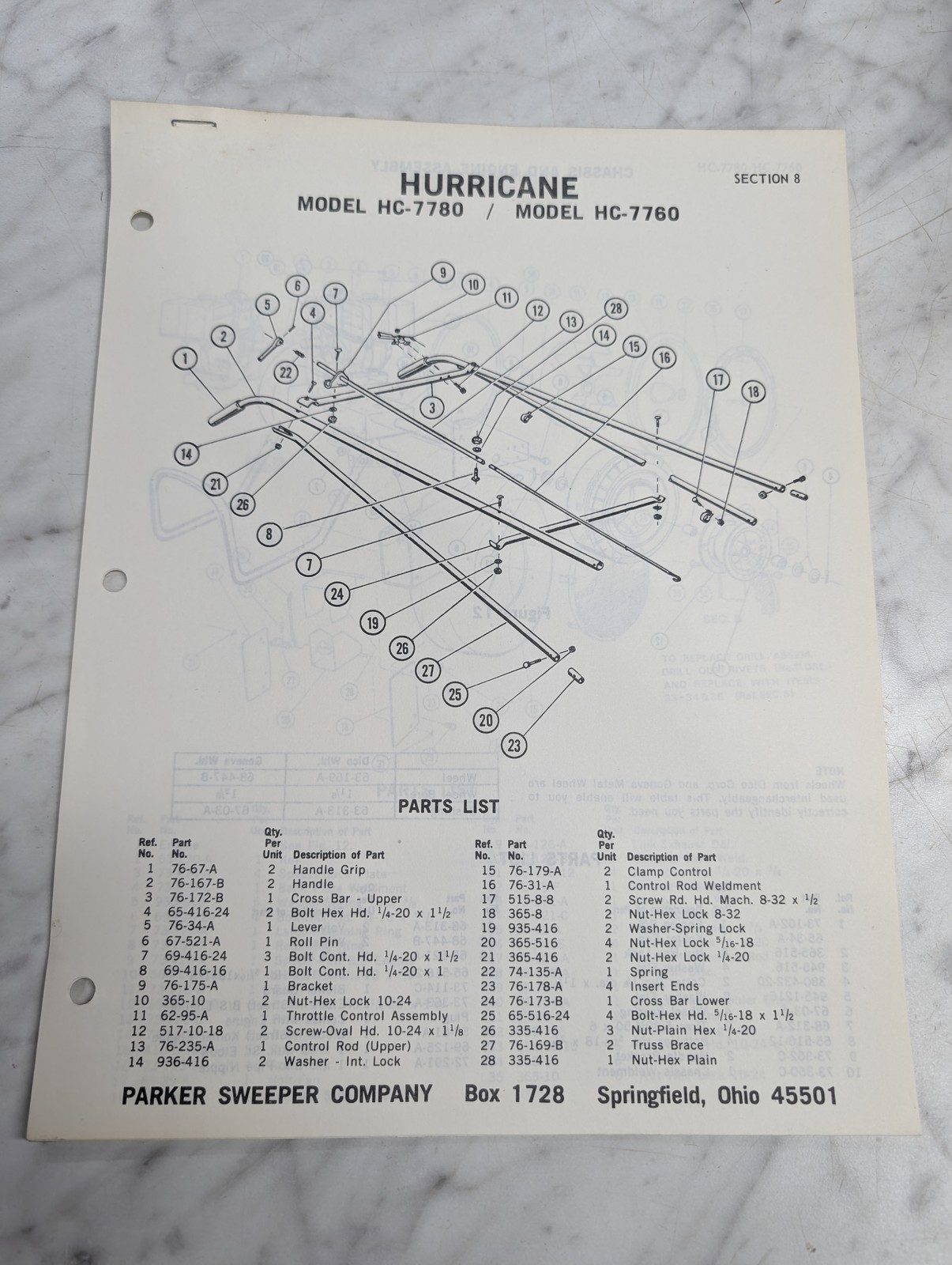 Parker Sweeper Repair Parts List Sheets Catalog Model Hc-7760 7780 Hurricane