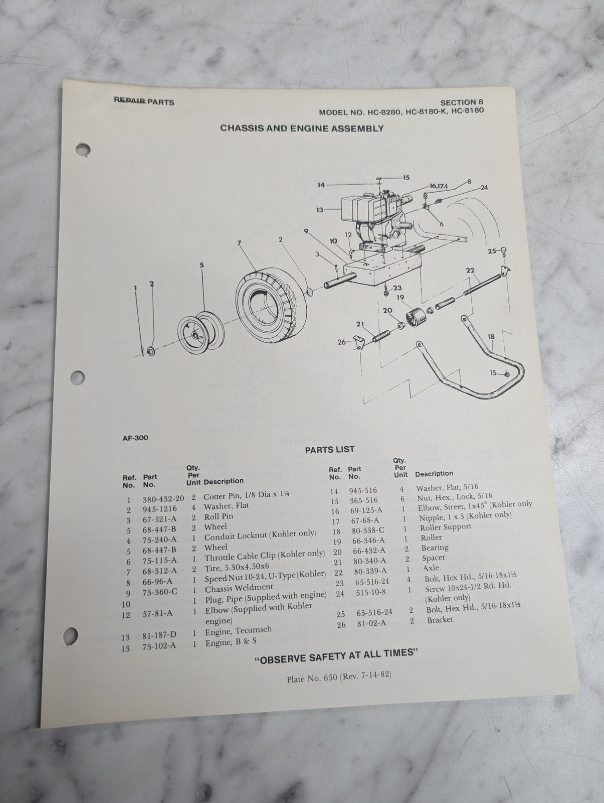 Parker Sweeper Repair Parts List Sheets Catalog Model Hc-8280 8180-K