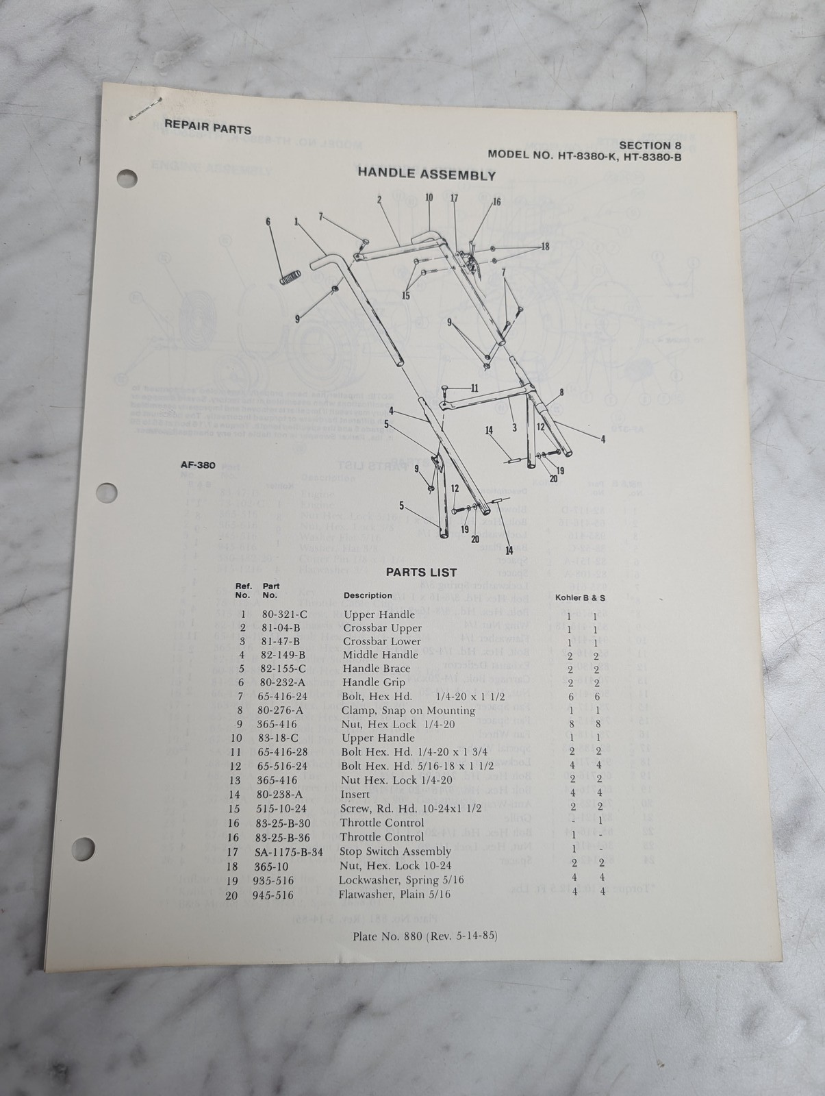 Parker Sweeper Repair Parts List Sheets Catalog Model Hc-8380-B K