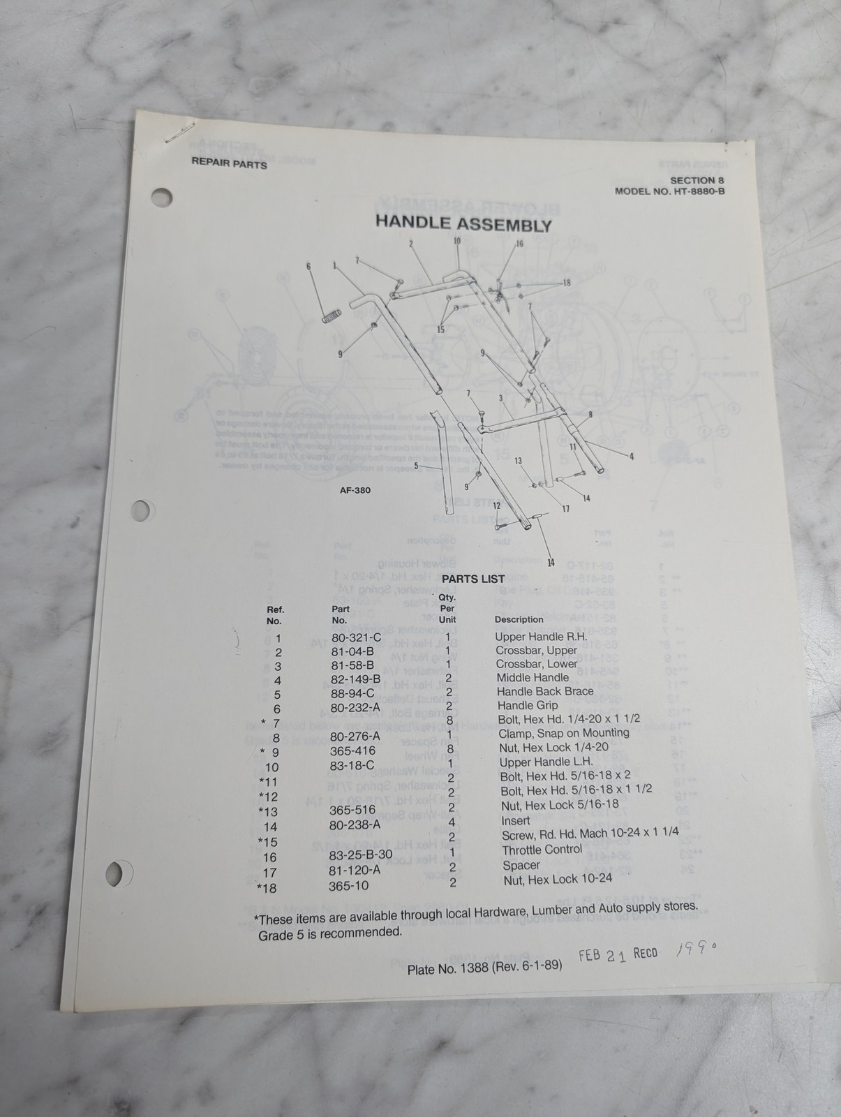 Parker Sweeper Repair Parts List Sheets Catalog Model Ht-8880-B