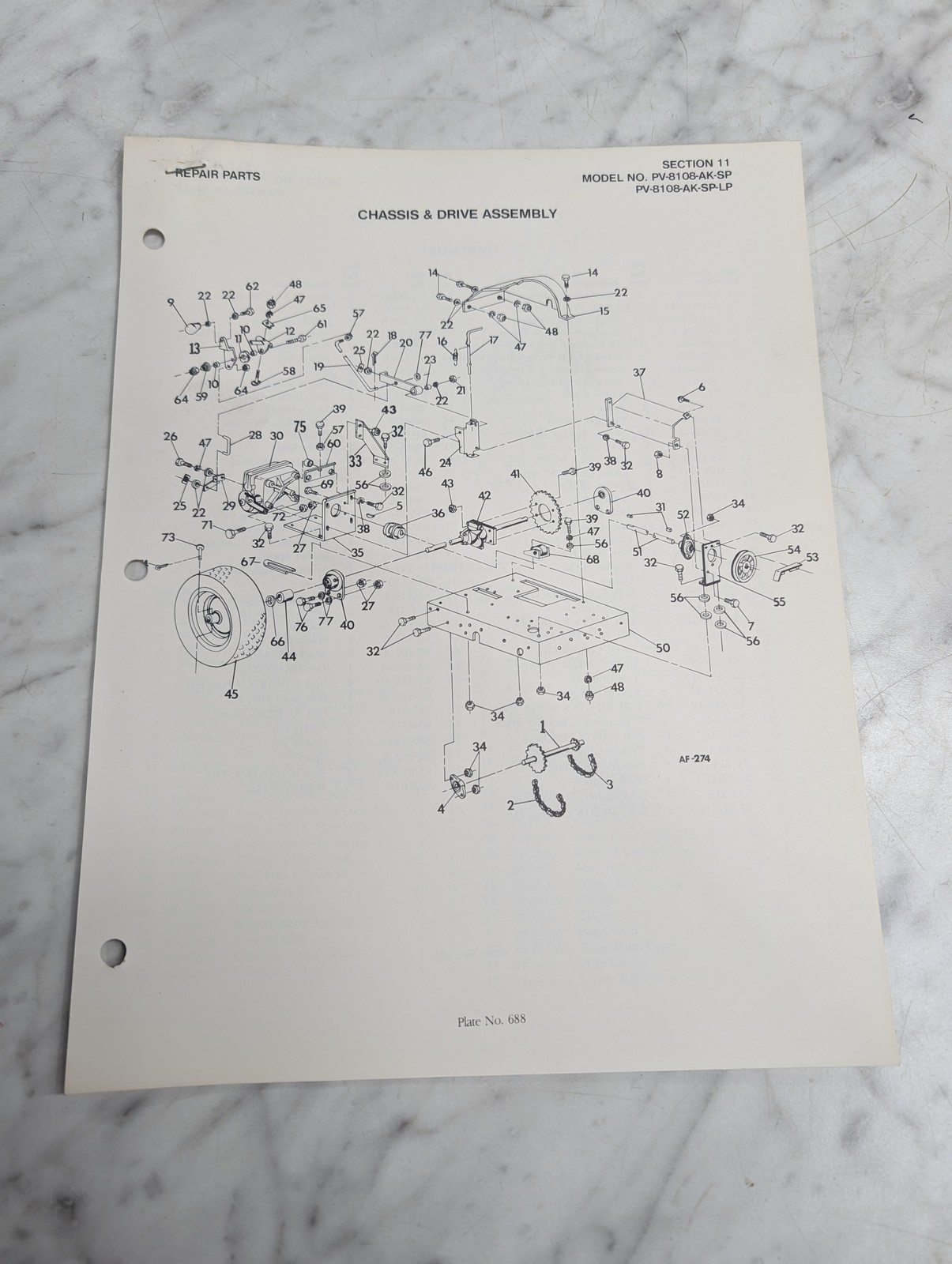 Parker Sweeper Repair Parts List Sheets Catalog Model Pv-8108-Ak-Sp-Lp