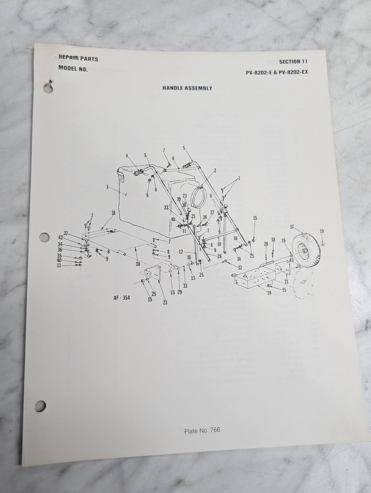 Parker Sweeper Repair Parts List Sheets Catalog Model Pv-8202-Ex