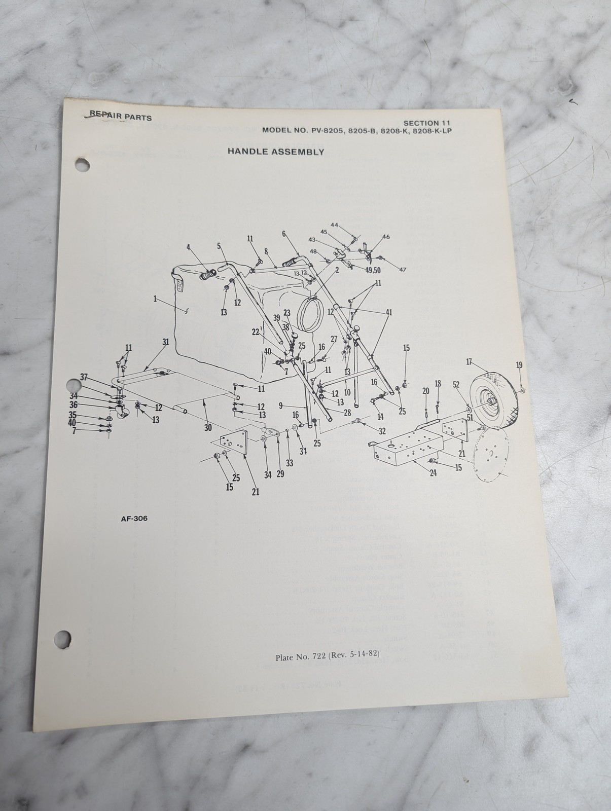 Parker Sweeper Repair Parts List Sheets Catalog Model Pv-8205-B 8208-K-Lp