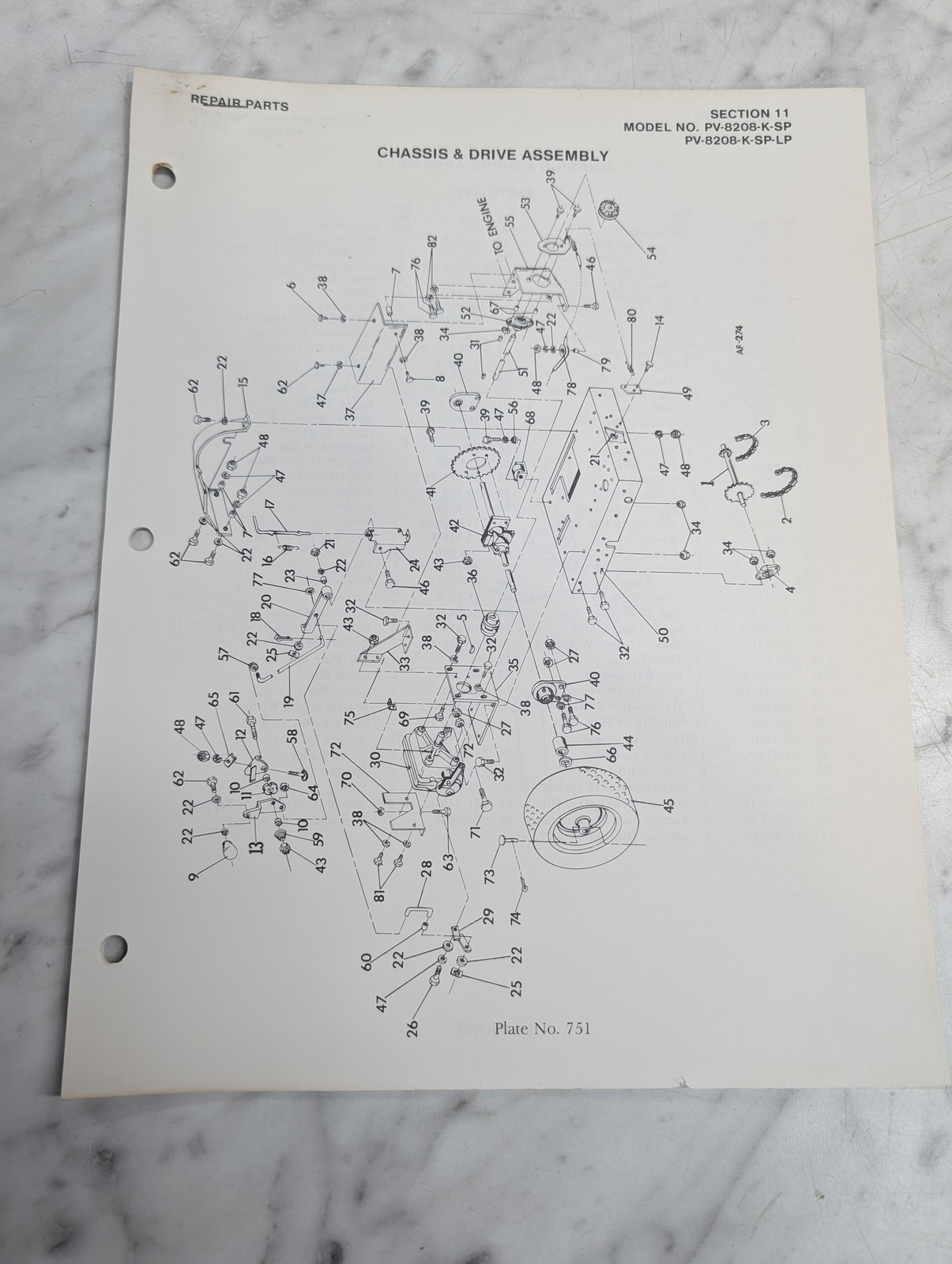 Parker Sweeper Repair Parts List Sheets Catalog Model Pv-8208-K-Sp-Lp