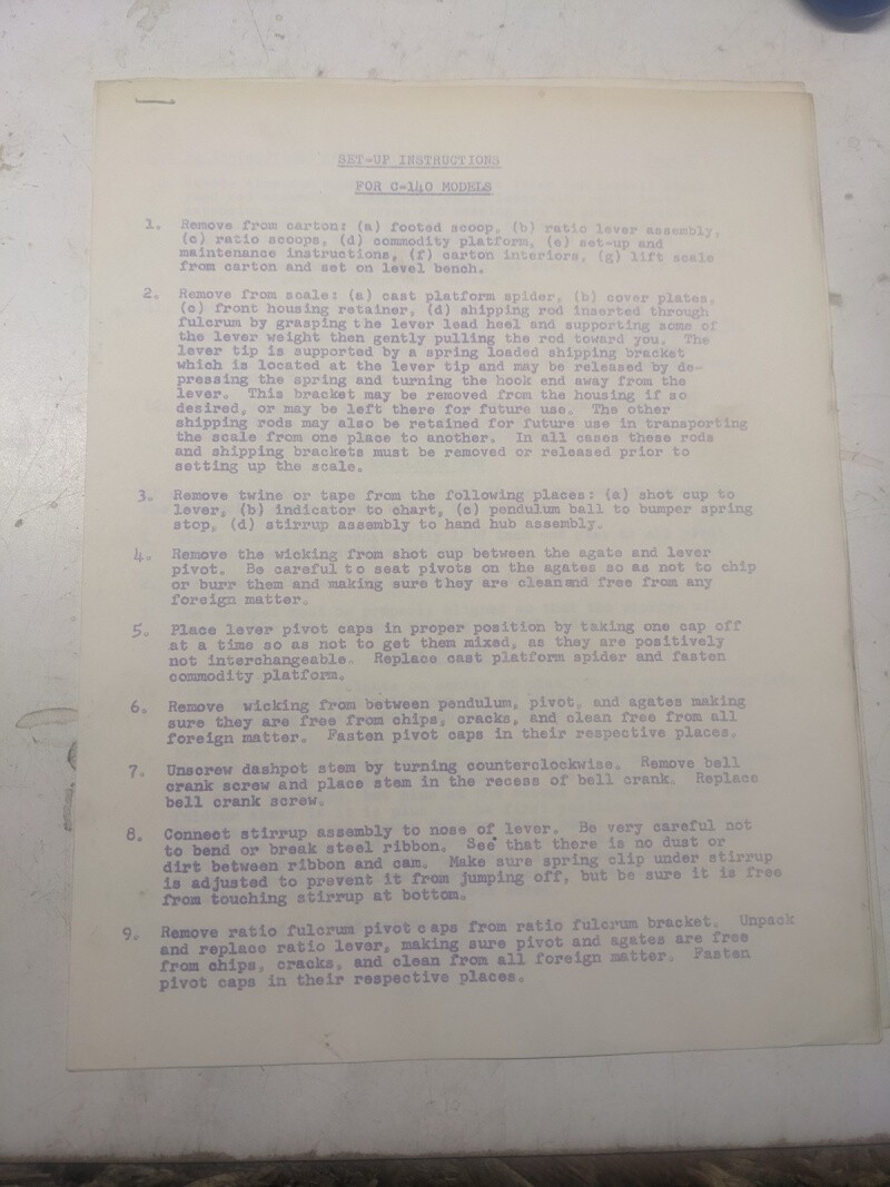 Pennsylvania Scale Set-Up Instruction Calibration Model C-140 Photocopy