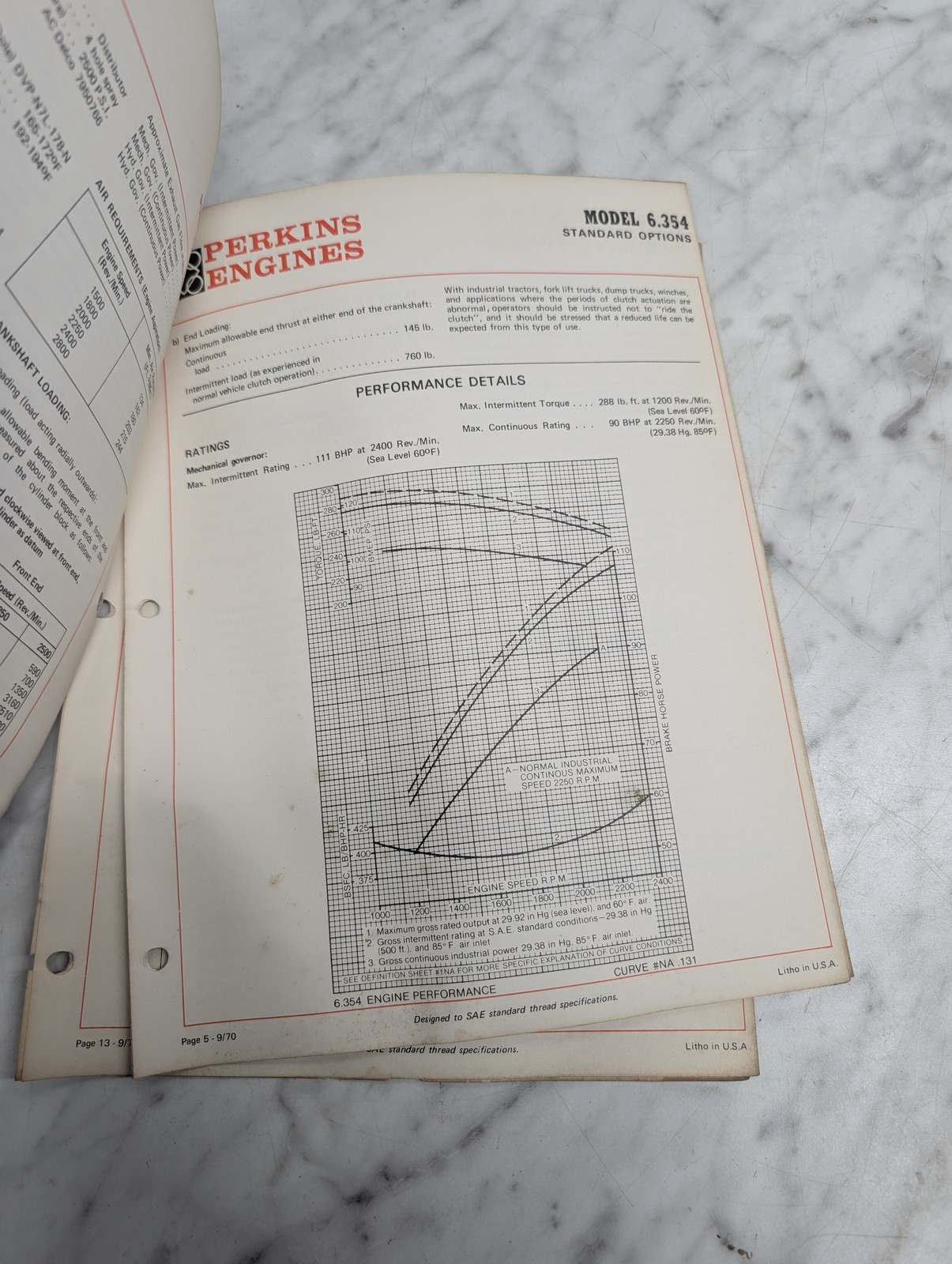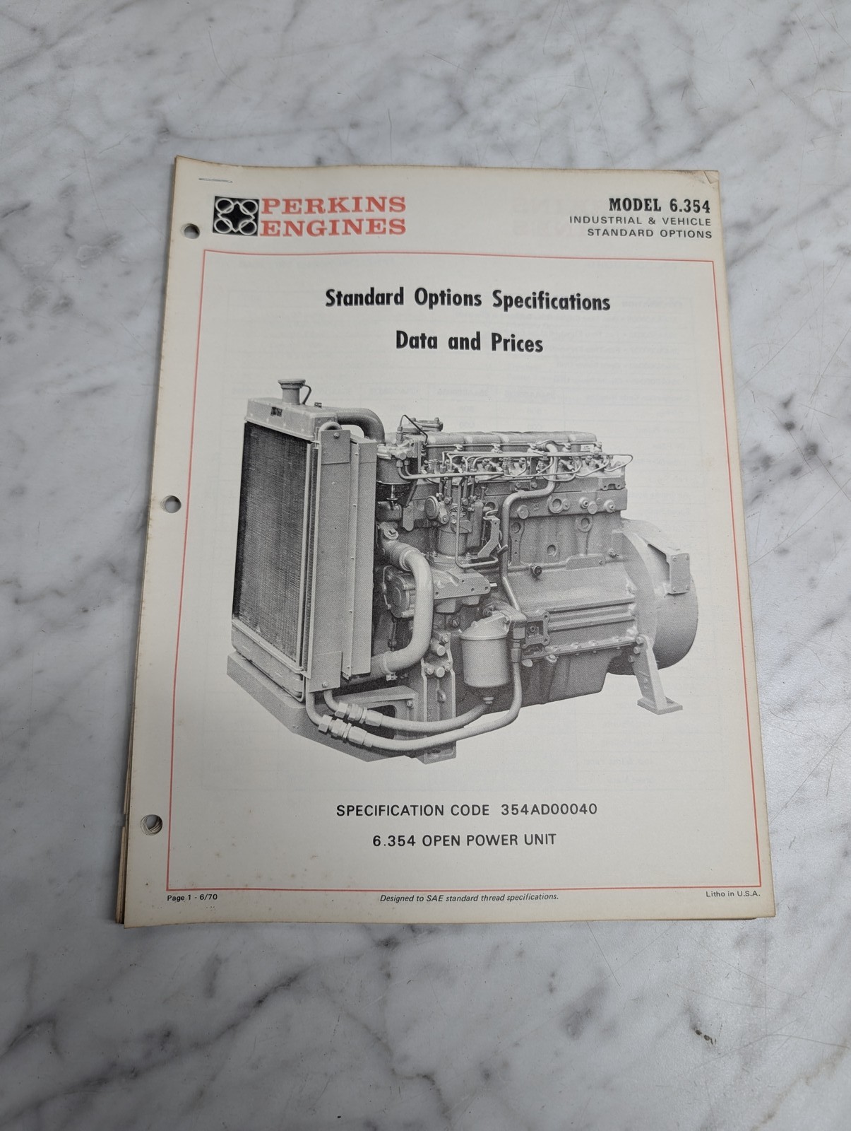Perkins Diesel Engines Model 6.354 Industrial Options Data & Prices Manual 1970