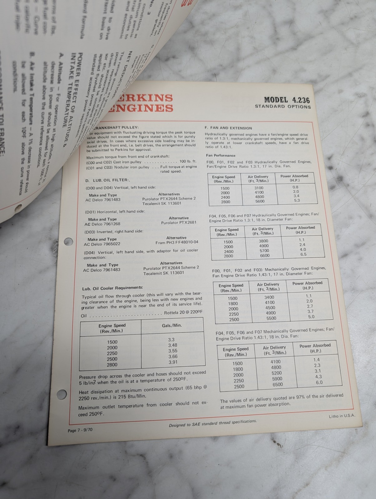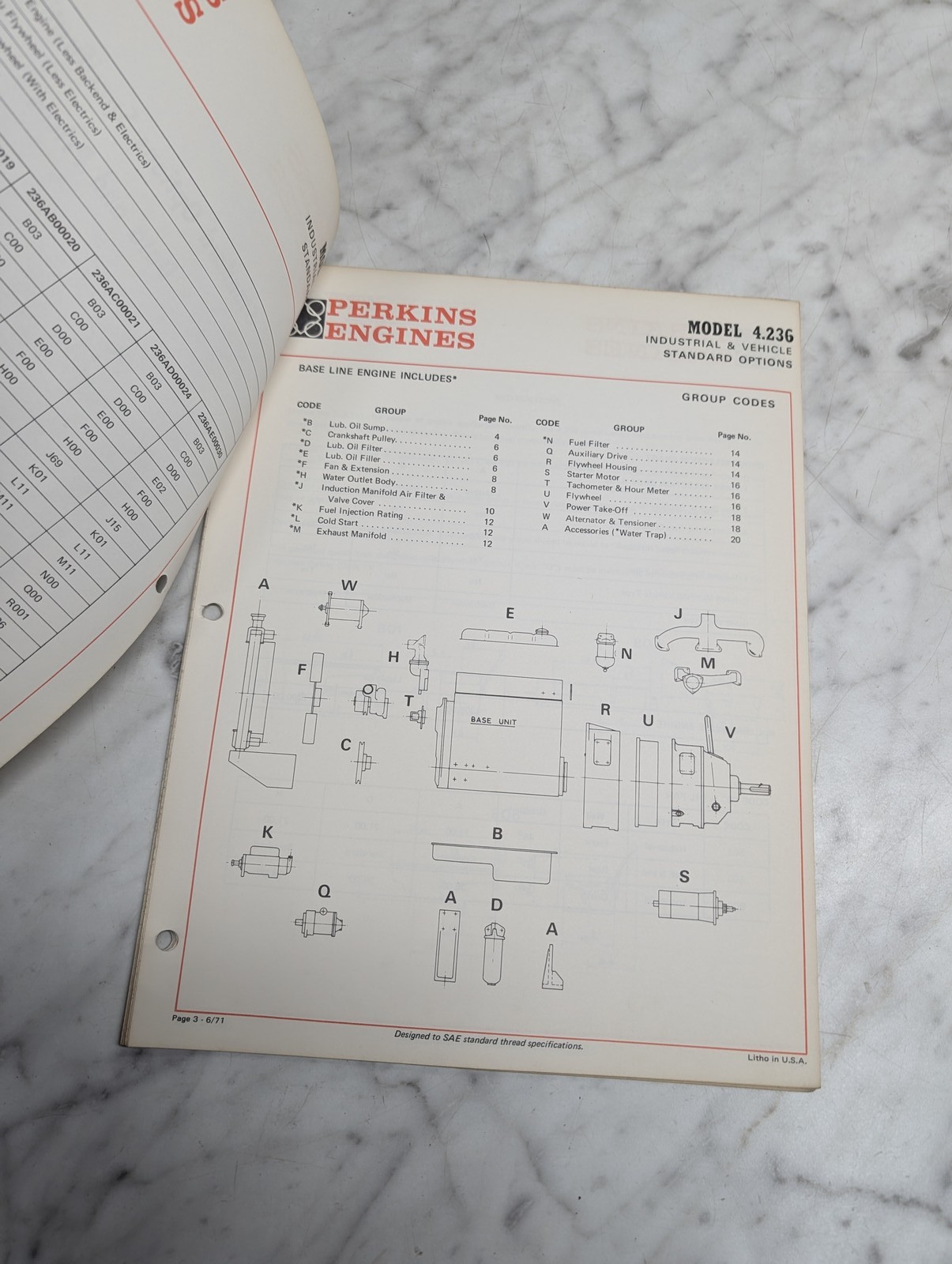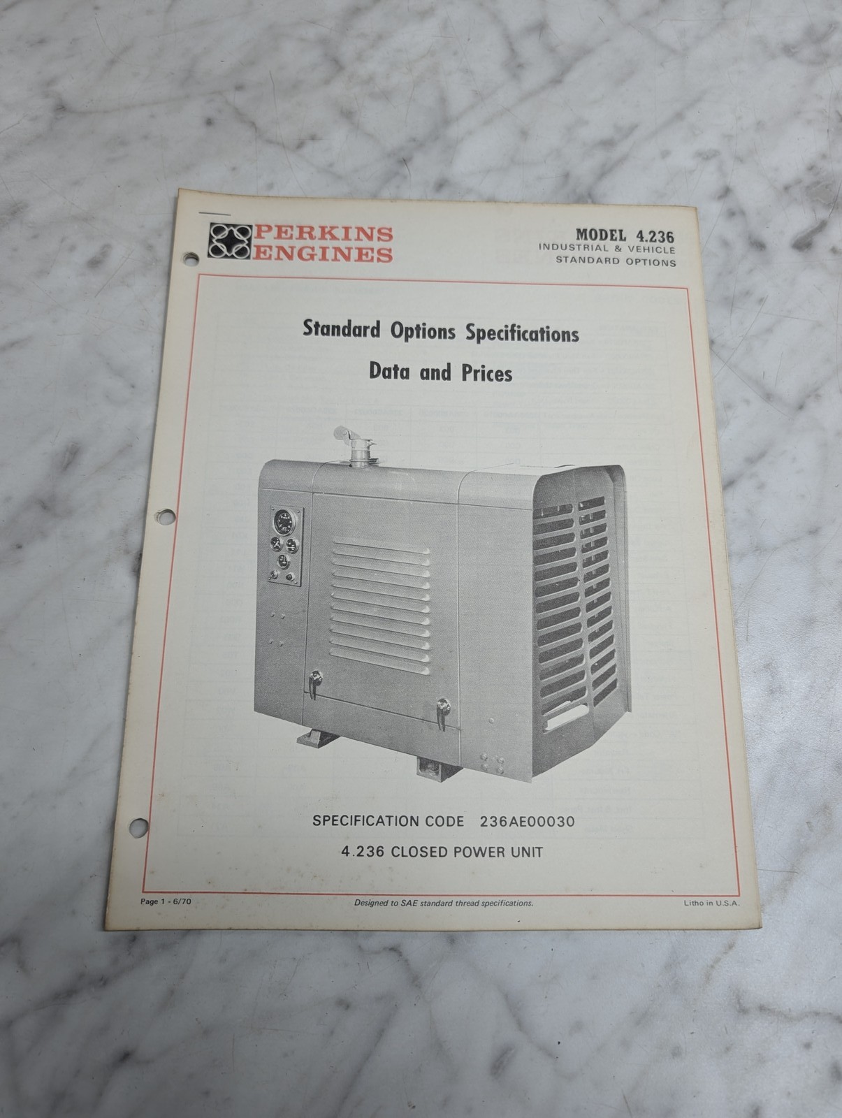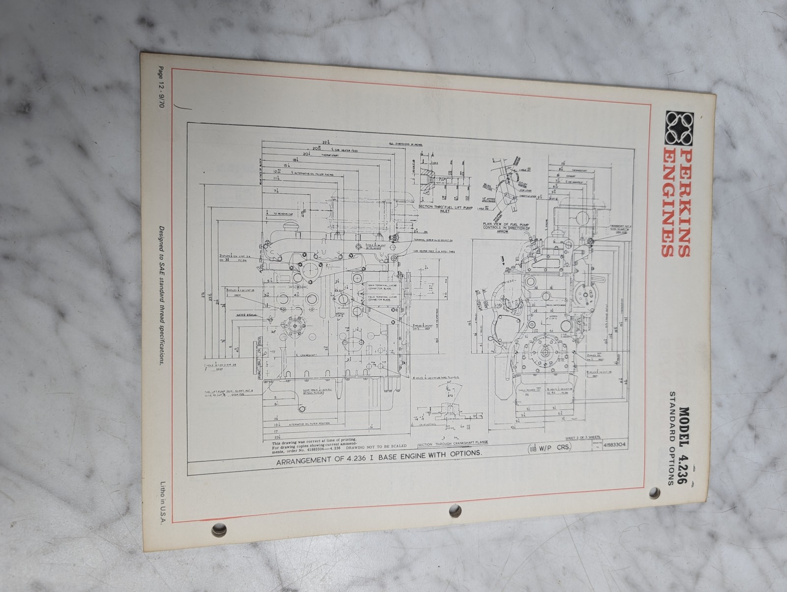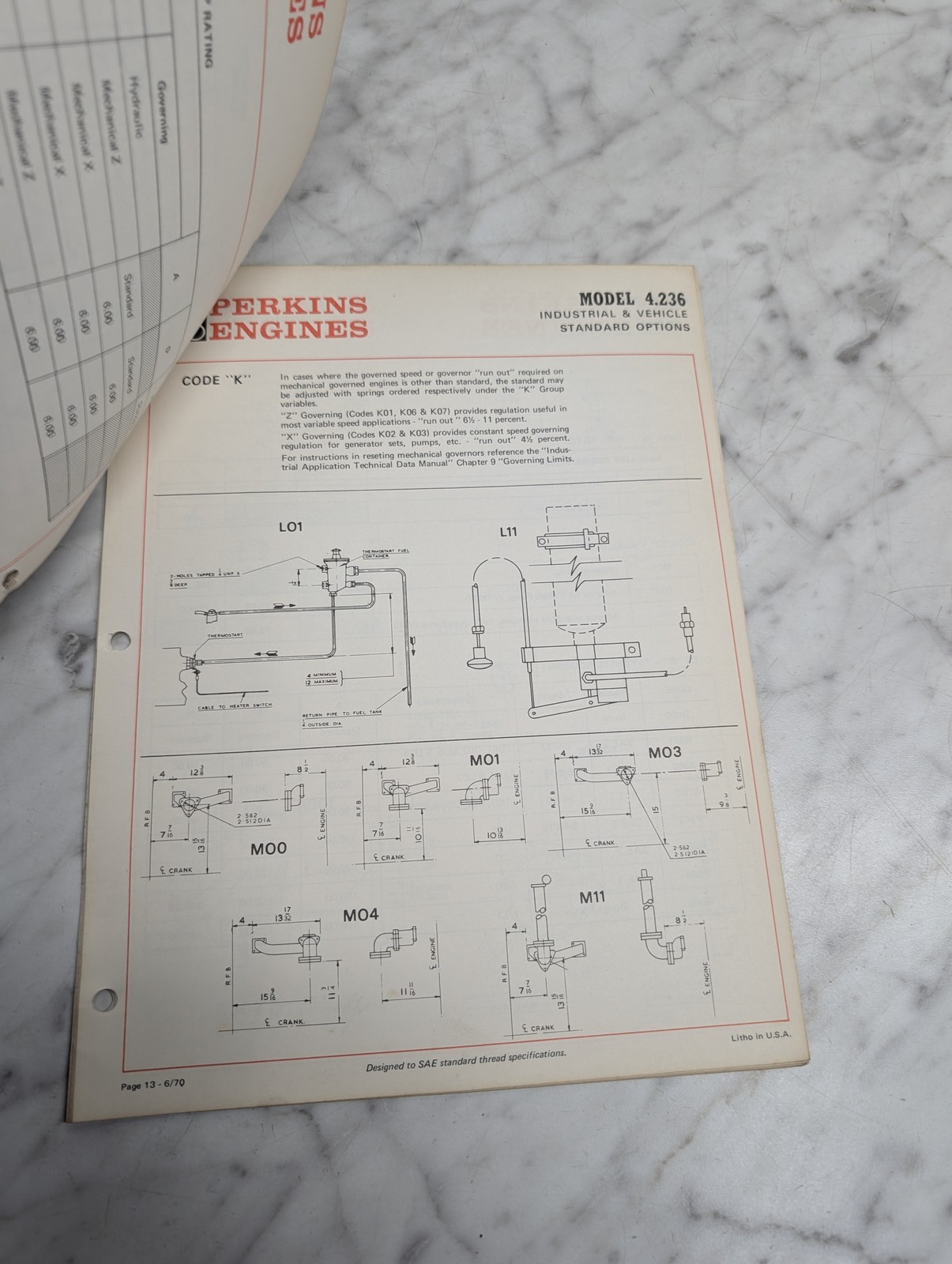 Perkins Engines Model 4.236 Industrial Options Data & Prices Manual 1970
