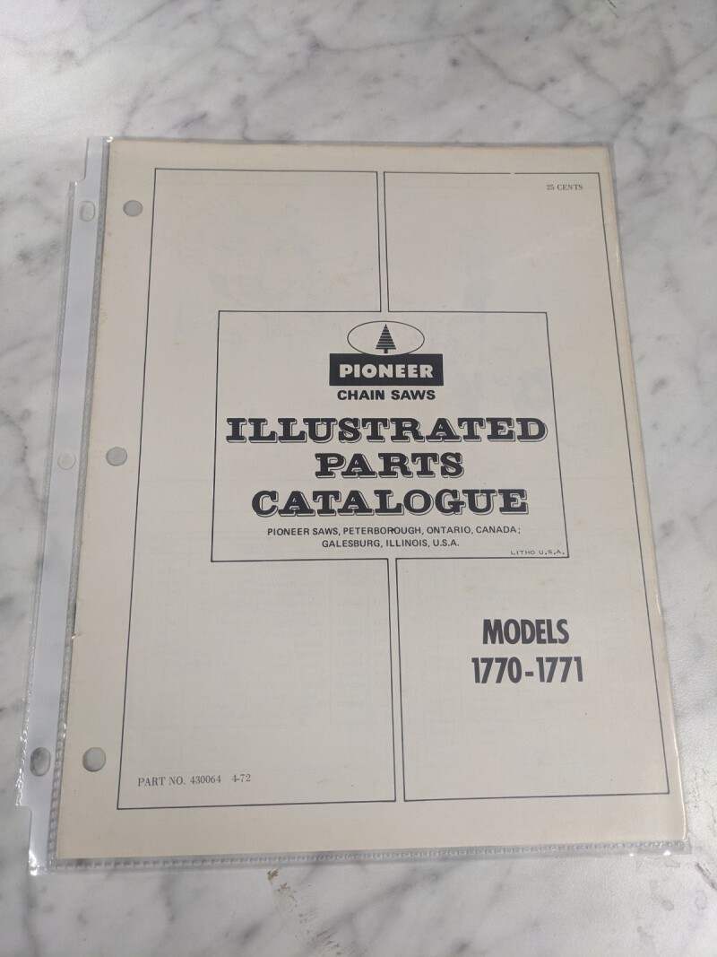 Pioneer Chain Saws Service Parts Manual Catalog List Model 1770-1771 430064