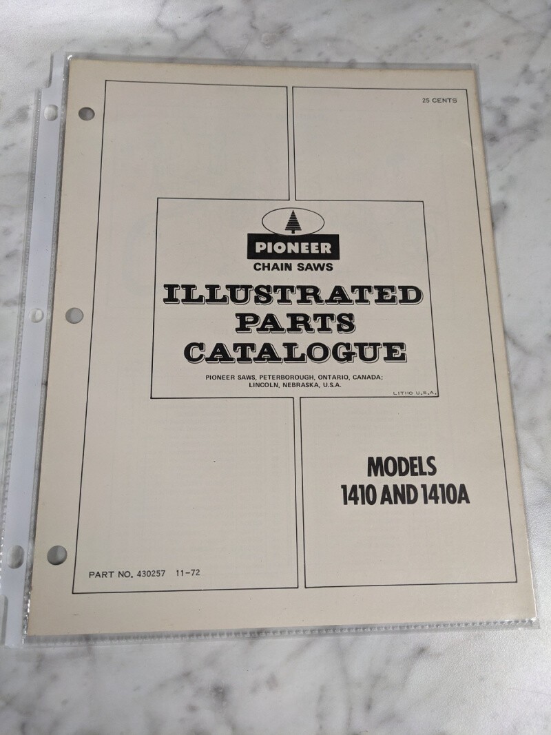 Pioneer Illustrated Chainsaws Service Parts Manual List Model 1410 A 1972 430257