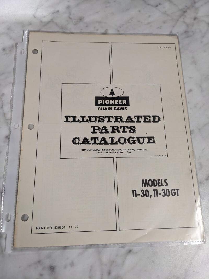 Pioneer Illustrated Service Parts List Manual Chain Saws Model 11-30 Gt 1972
