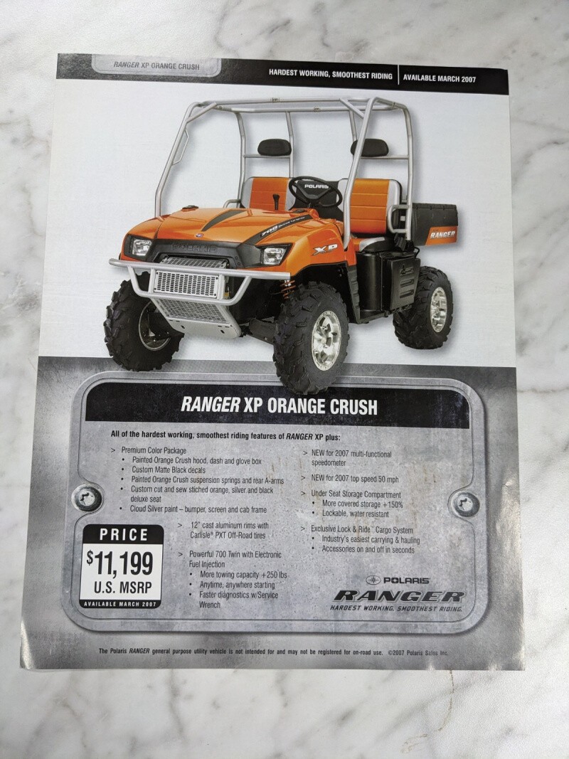 Polaris Sales Brochure Specifications Price 2007 Ranger Xp Orange Crush