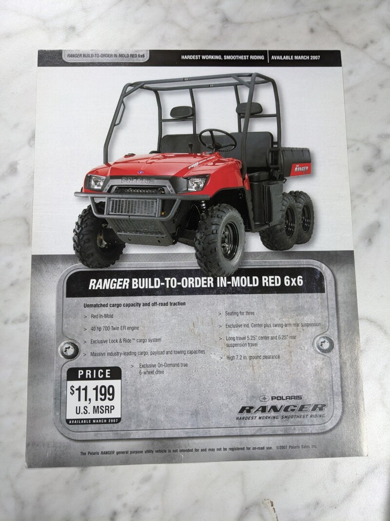 Polaris Sales Brochure Specifications Price Ranger In-Mold Red 6X6 Utv Atv 2007