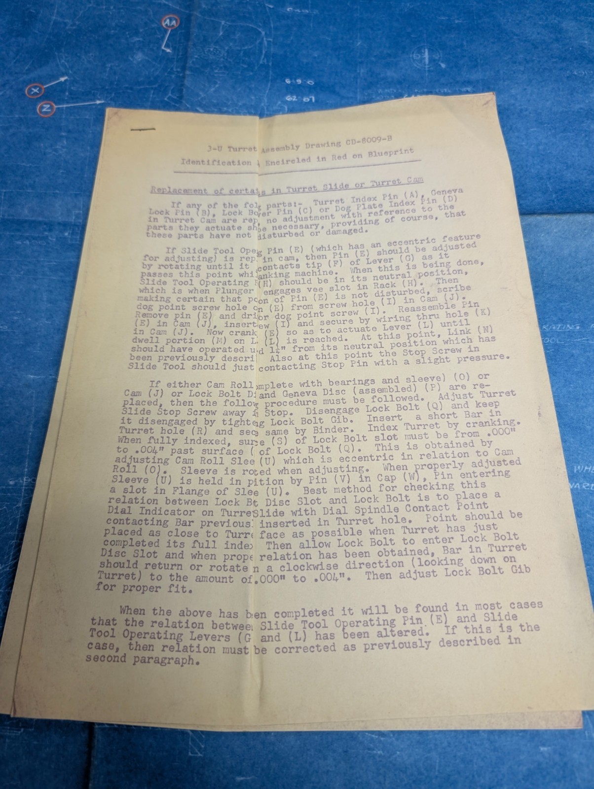 Potter & Johnston 3-U Lathe Machine Tool Drawing Diagram Print Information