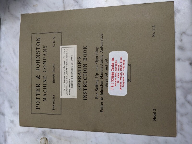 Potter Johnston Machine Operator Service Manual 5A 6A 113 Automatic Chuck Turn