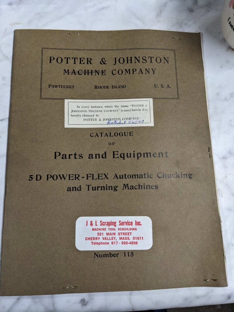 Potter Johnston Machine Parts List Manual Catalog 5D 115 Automatic Chuck Turning