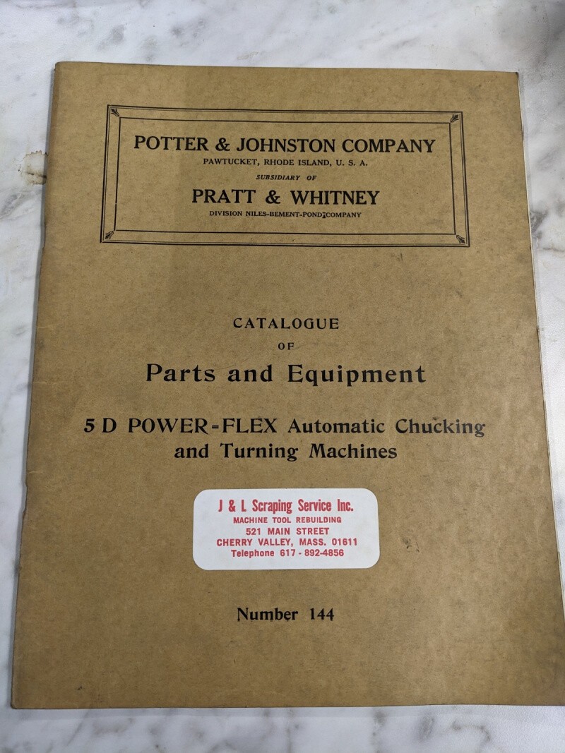 Potter Johnston Machine Parts List Manual Catalog 5D 144 Automatic Chuck Turning