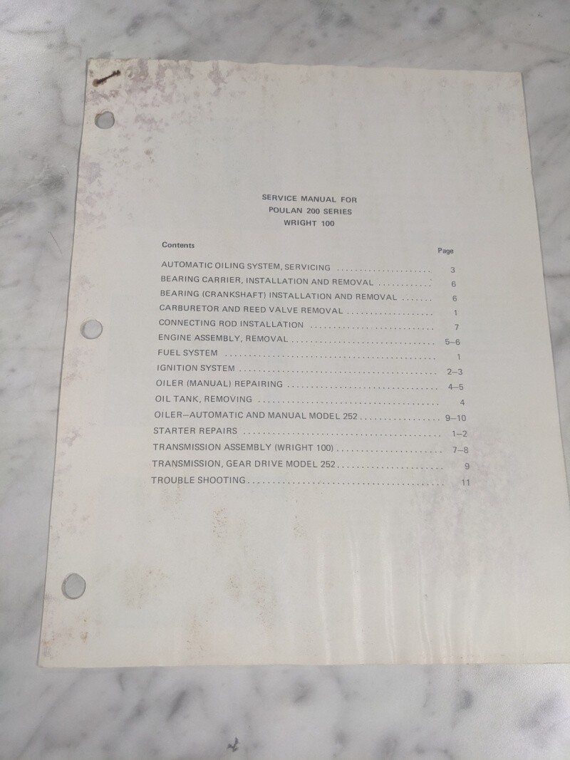 Poulan Chain Saw Service Repair Maintenance Manual 200 Series Wright 100