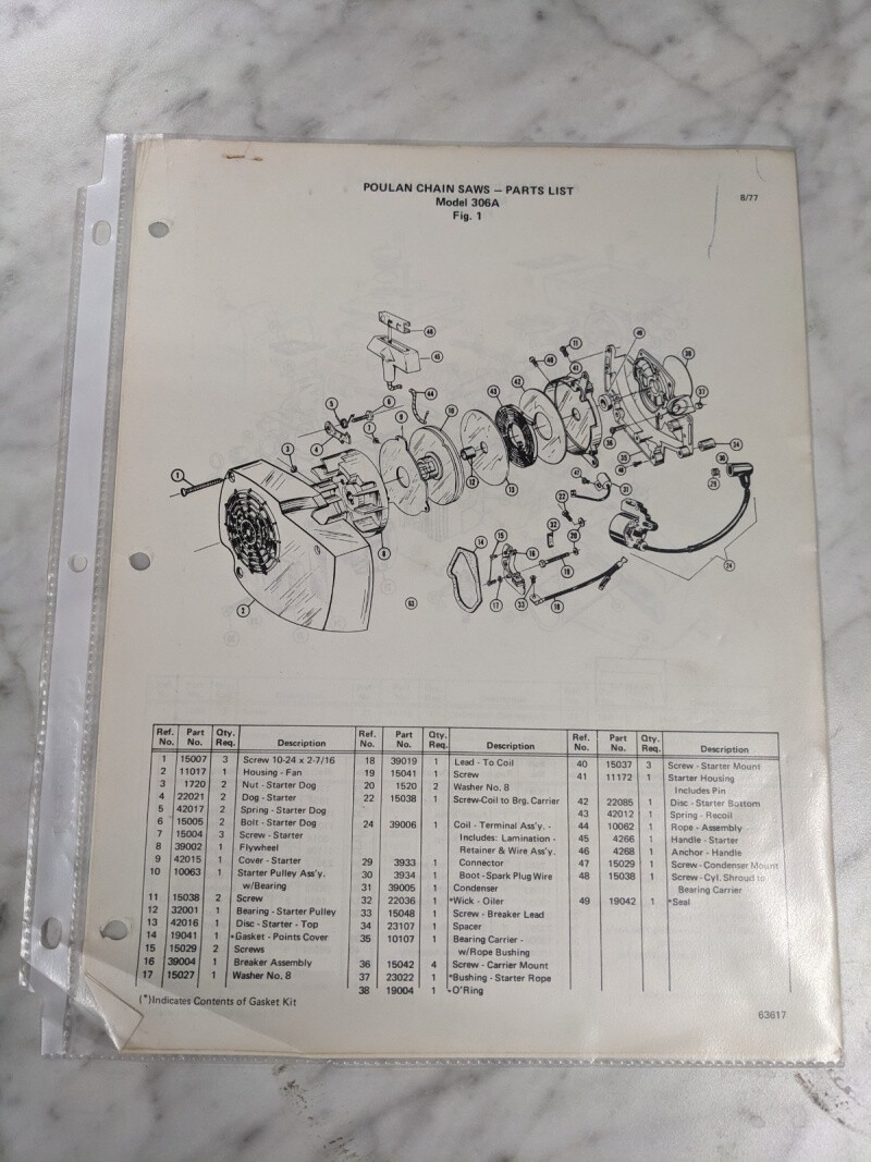 Poulan Chain Saws Illustrated Parts List Manual Model 306A 1977 63617