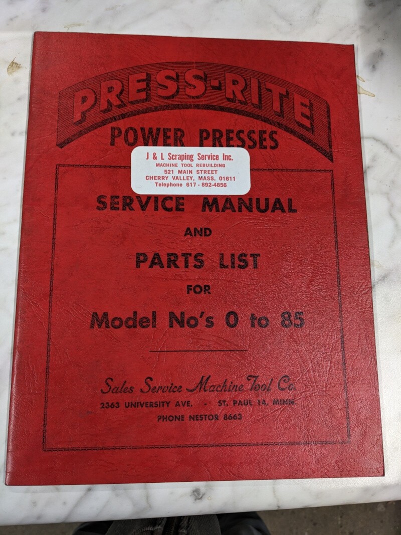 Power Press-Rite Operator Service Manual Parts List Book Catalog Model #’S 0-85
