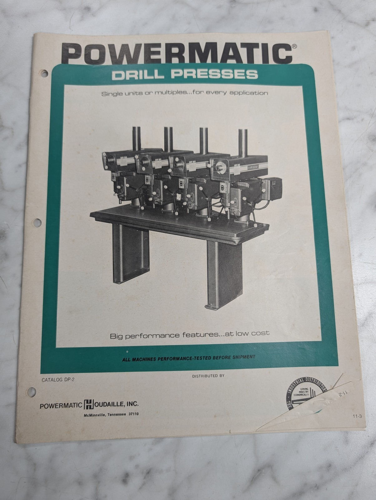Powermatic Drill Presses Sales Information Brochure Catalog Dp-2 Machine Tools