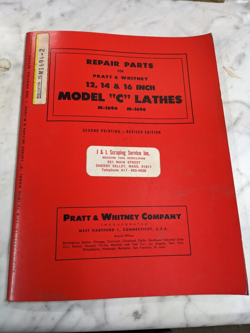 Pratt Whiteney 12 14 16” Model C Lathe Service Repair Part List Manual 1694 1696