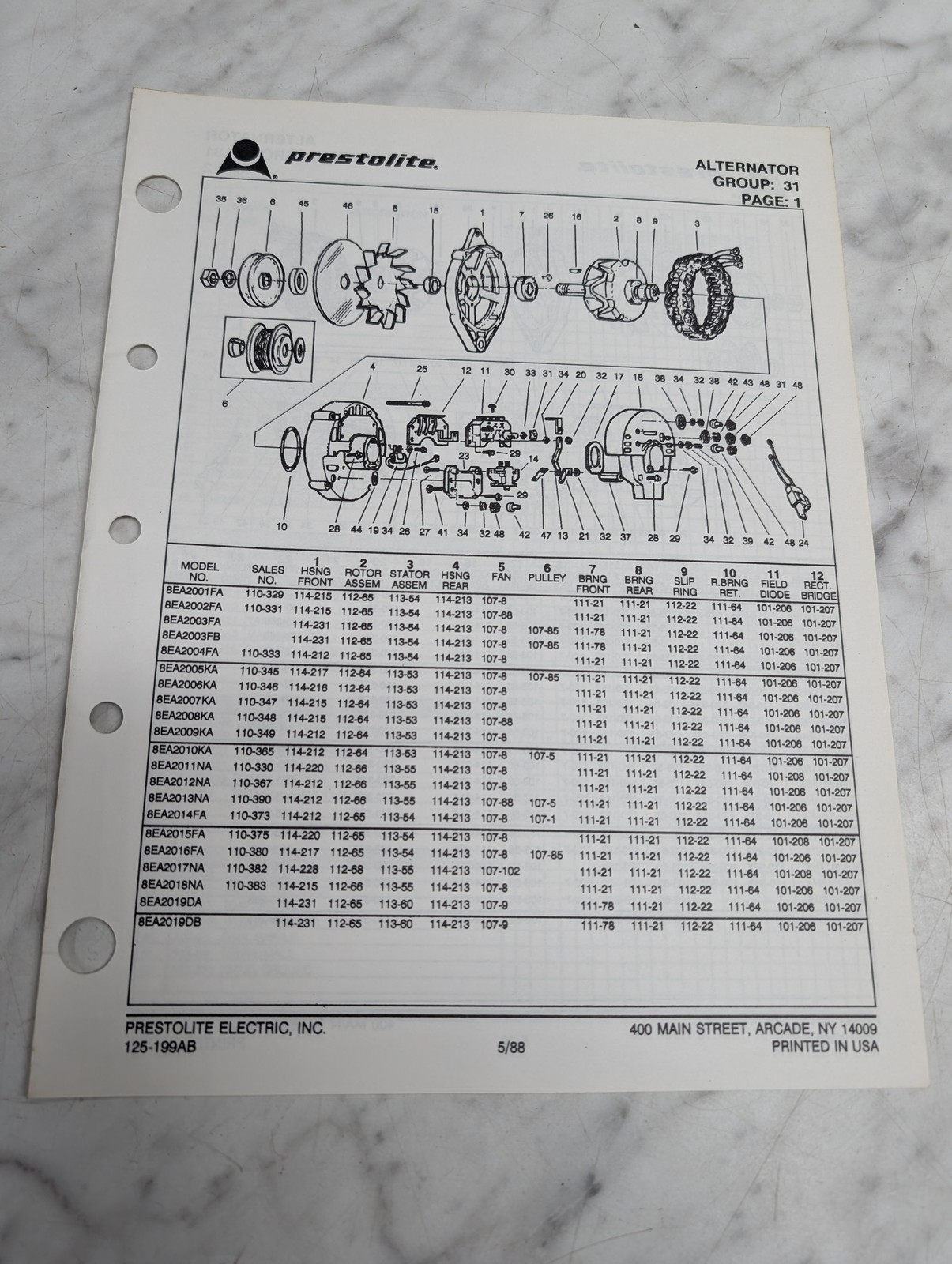 Prestolite Alternator Group 31 8Ea2001Fa 8Ea2002Fa 8Ea2003Fa Parts Manual List