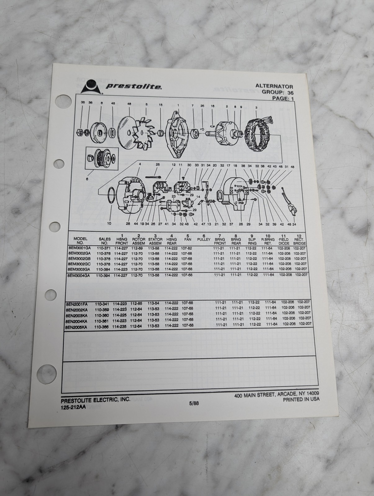 Prestolite Alternator Group 36 Model Benz001Fa Benz002Ka Benz003Gb Ben3000Ga Par