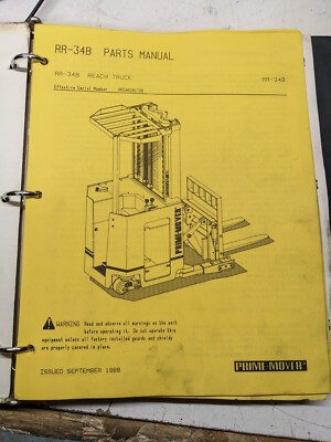 Prime Mover Rr-34B Parts Manual List Book Reach Truck Fork Lift Rr-34B 1988
