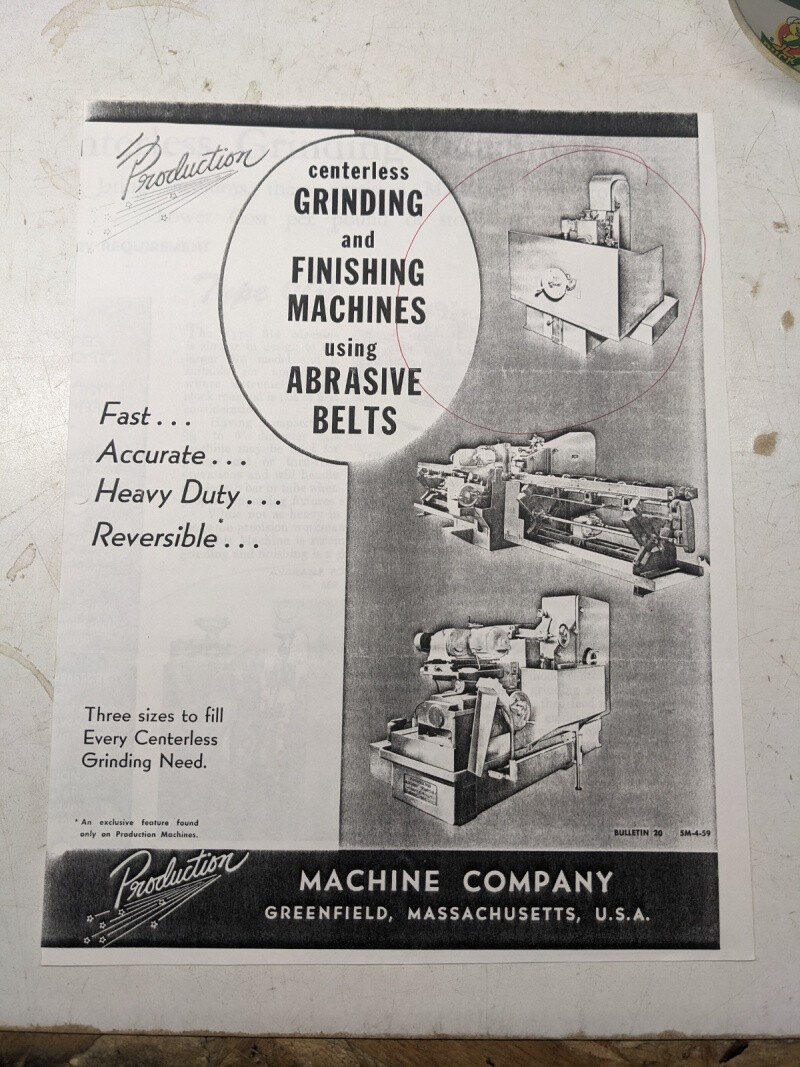 Production Machine Abrasive Belt Centerless Grinding Sales Brochure Specs Feat