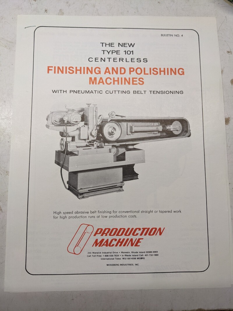 Production Machine Centerless Finishing Polishing Type 101 Sales Brochure Specs