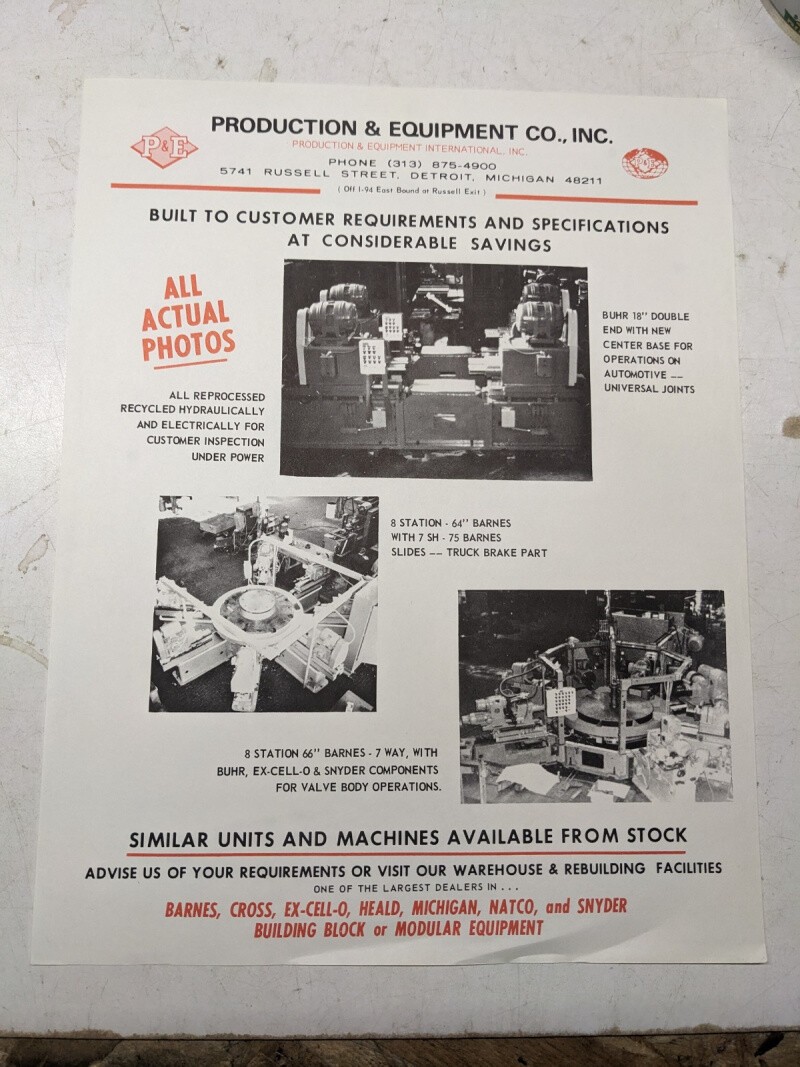Production Machine Equipment Sales Brochure Single Page Company Capability