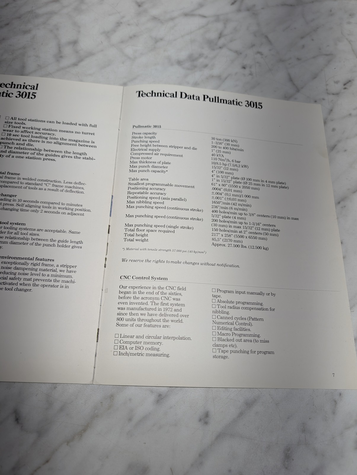 Pullmax Pullmatic 3015 Cnc Control System Smt-Pullmax 1975 1923 Sales Brochure