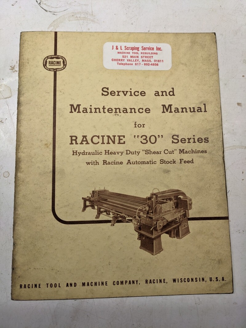 Racine Tool Machine Service Maintenance Manual #30 Series Shear Cut Automatic