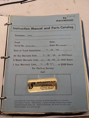 Raymond Model 20 Scr 1975 Fork Lift Truck Parts List Book Operation Maintenance